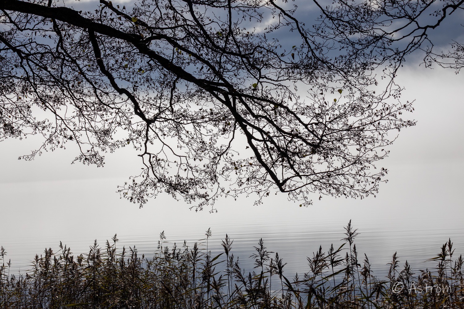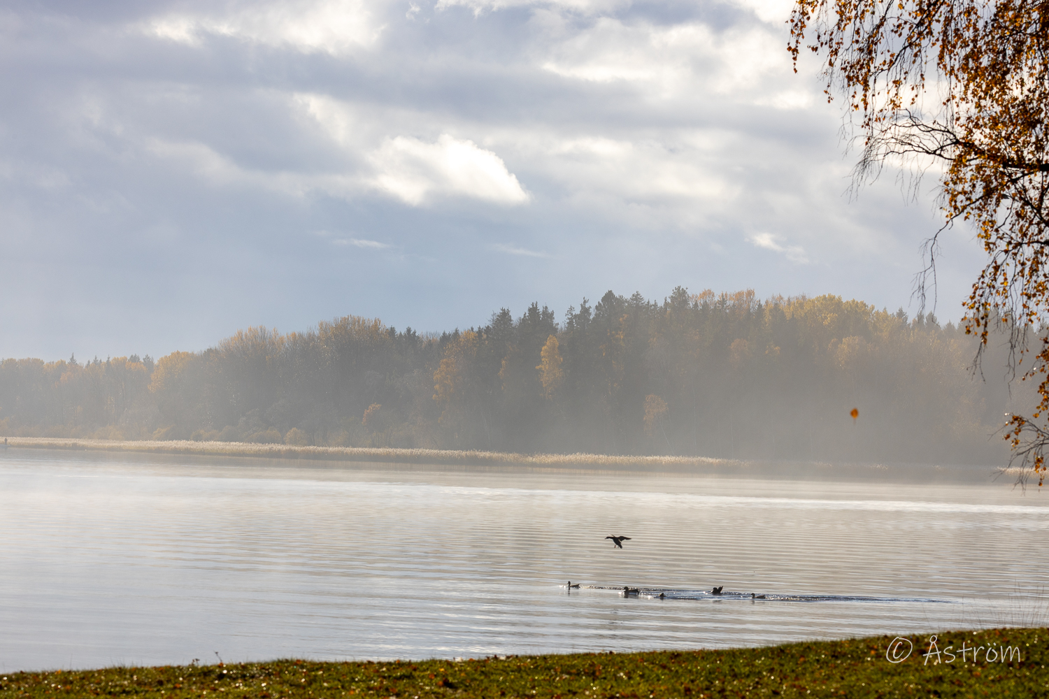 Tog kameran och flanerade ner mot sjön. Promenaden började i mysig dimma och avslutades i solsken. I dag blev det en sväng med stora linsen.